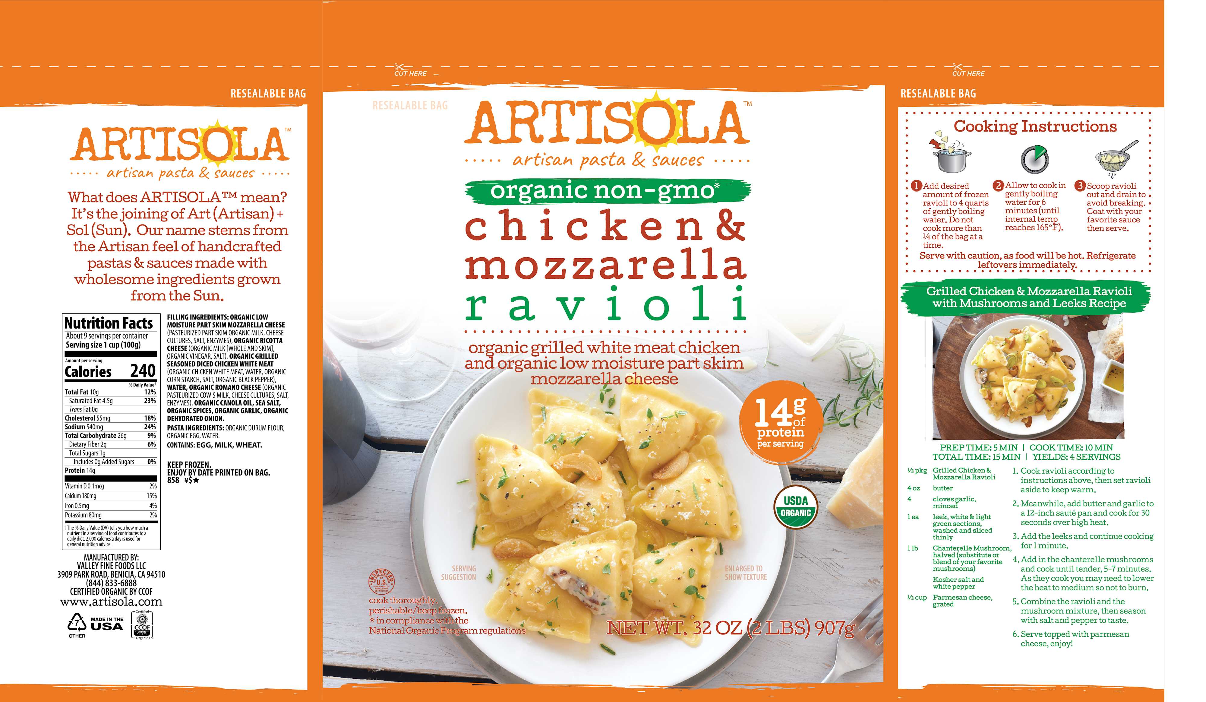 Organic Chicken and Mozzarella Ravioli Ingredients: FILLING INGREDIENTS: